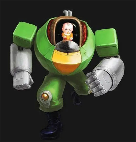 高智能婴儿,2岁的美国男婴,嘴里叼着奶嘴,加上机器才57CM高,9公斤重,A型血蓝眼睛。婴儿不具备攻击能力,他所驾驶的高智能机器可是力大无穷,所以攻击能力很高。不过由于婴儿是个左撇子(所以聪明嘛),拳头就显的最慢最短,而且腿脚不是很长,只适合近身攻击,不过由于考虑婴儿的安全,取消了倒空翻的招数,反而加入了符合婴儿顽皮特性的抓人大坐绝招,游戏设计的十分人性化,婴儿的综合能力是4人中最弱的。