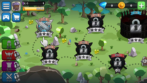 7、通关75关,可以进入困难关卡,其实就是血多点,最主要敌人放技能不再有骷髅提示,