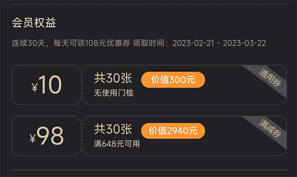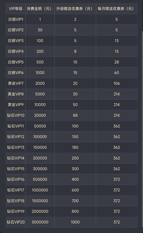 升级赠送的优惠券中,仅白银VIP1赠送满减券,其余VIP等级均赠送通用券;每月赠送的优惠券,均为满减券。